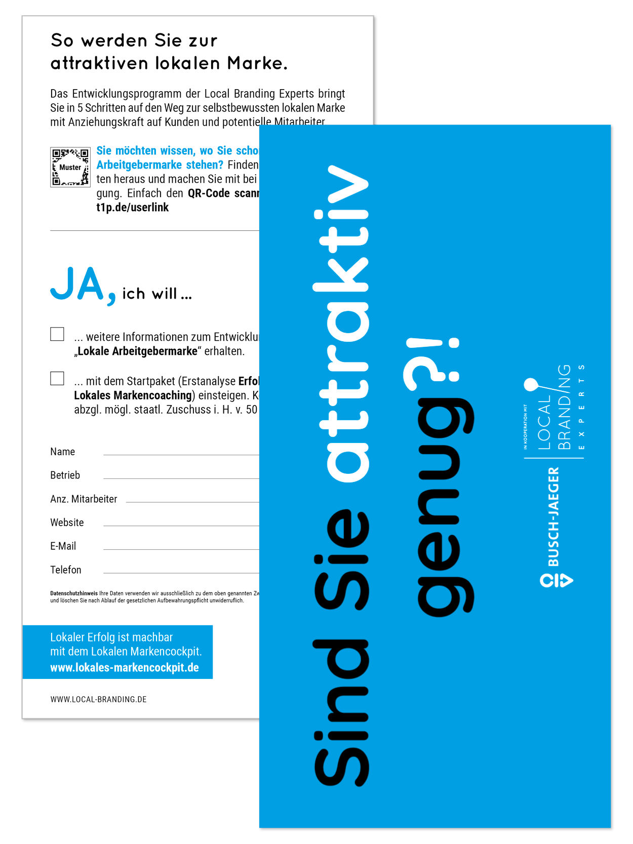 Sie buchen die Veranstaltung im Design der LBEG inkl. Kommunikationspaket für Ihre Werbung (bestehend u. a. aus Einladungsmailing, Online Bannern, Roll-Ups, DIN Lang Karten 10-Punkte-Befragung (On- und Offline), Entwicklungsbroschüre.)